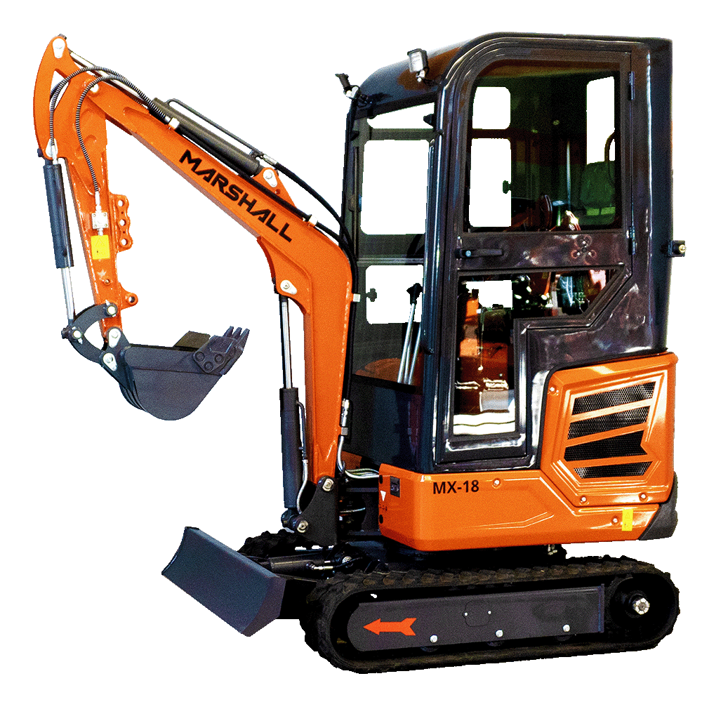 Puissante et polyvalente, la MINI PELLE MARSHALL MX-18C avec cabine acier de série pourra ainsi vous accompagner pour des travaux demandant à la fois souplesse et robustesse.