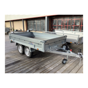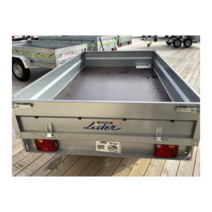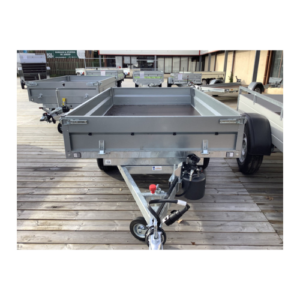 Remolque volquete LIDER, GVW 750kg, con ruedas inferiores para facilitar el viaje, incluso cargado.